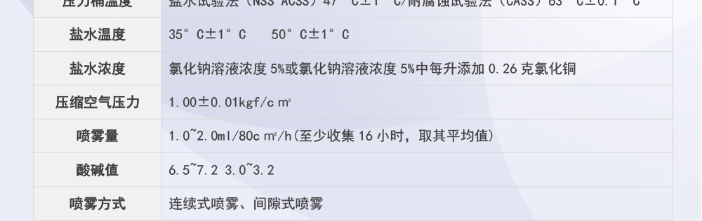 用途:鹽霧試驗箱可分為:溫度/濕度/鹽霧復(fù)合式試驗機,步入式鹽干濕試驗室,步入式鹽水噴霧試驗室,鹽水噴霧試驗機,可程式鹽水噴霧試驗機,電腦式鹽水噴霧試驗機,精密型鹽水噴霧試