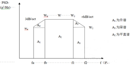 設w=wb+w1=0.2g²/Hz,fa=10Hz,fb=20Hz,f1=1000Hz,f2=2000Hz,由于fa 的wa 升至fb 的wb 處,斜率是3dB/oct,而wb=0.2g²/Hz,所以wa=0.1g²/Hz。
