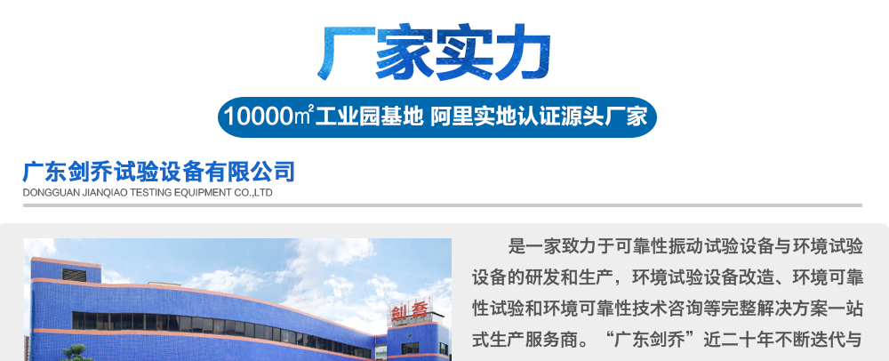 您好!歡迎光臨廣東劍喬試驗(yàn)設(shè)備有限公司官網(wǎng)!主營(yíng):振動(dòng)臺(tái),振動(dòng)試驗(yàn)臺(tái),電動(dòng)振動(dòng)臺(tái),高頻振動(dòng)臺(tái),沖擊試驗(yàn)臺(tái)